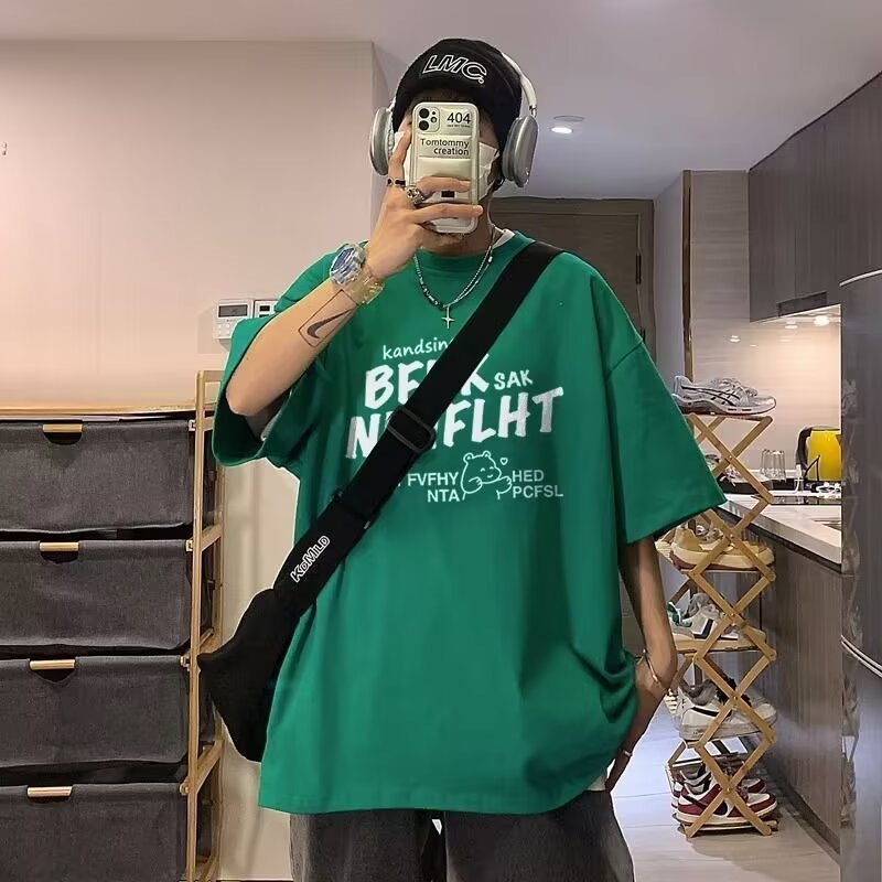 American Vintage Men’s Pure Cotton Short-sleeved Loose Half-sleeve T-shirt