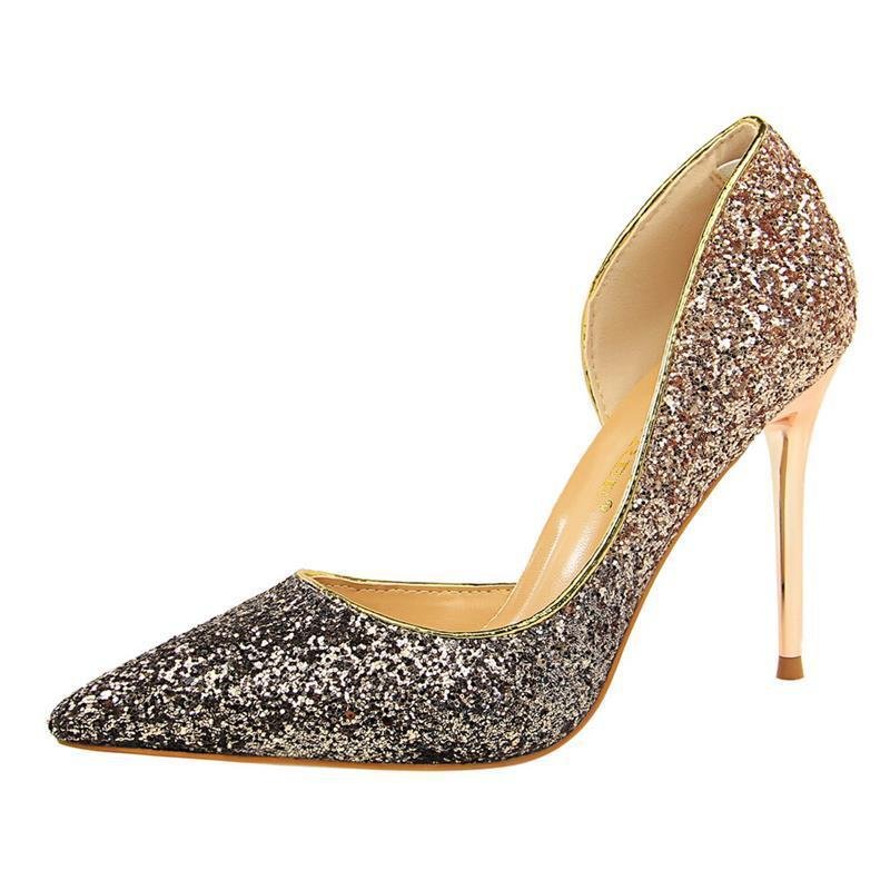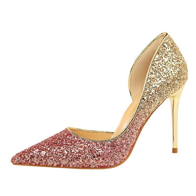 Crystal High Heels Women’s Stiletto Heel Gradient Blue Sequined Party Shoes