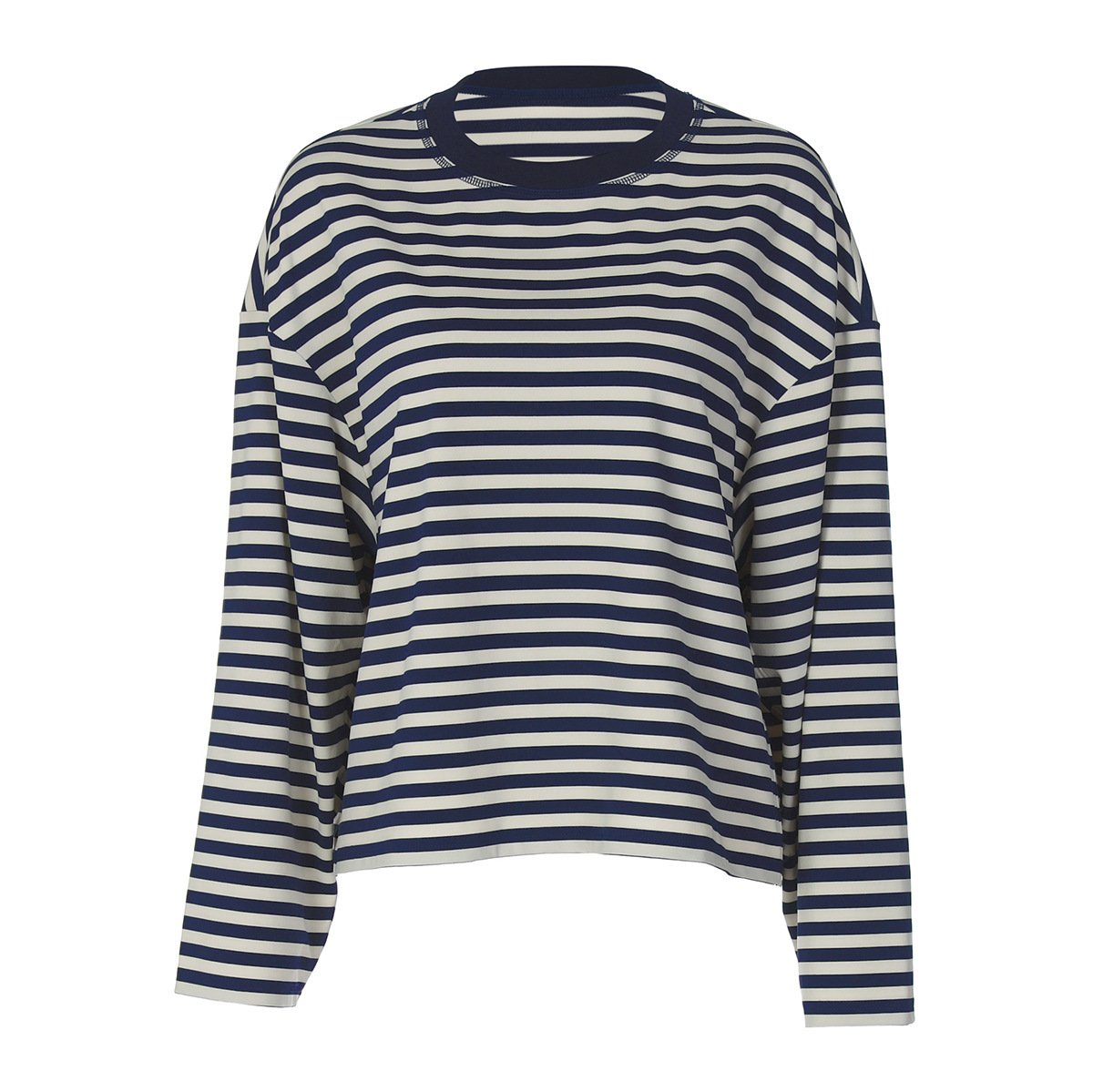 Fashion Striped Loose Contrast Color Round Neck Long Sleeve T-shirt