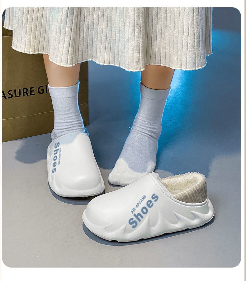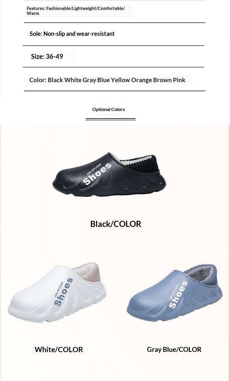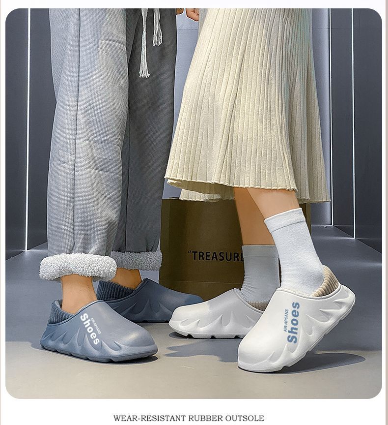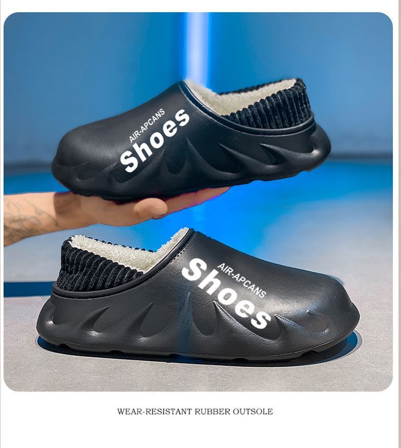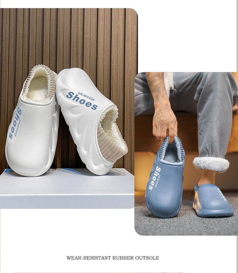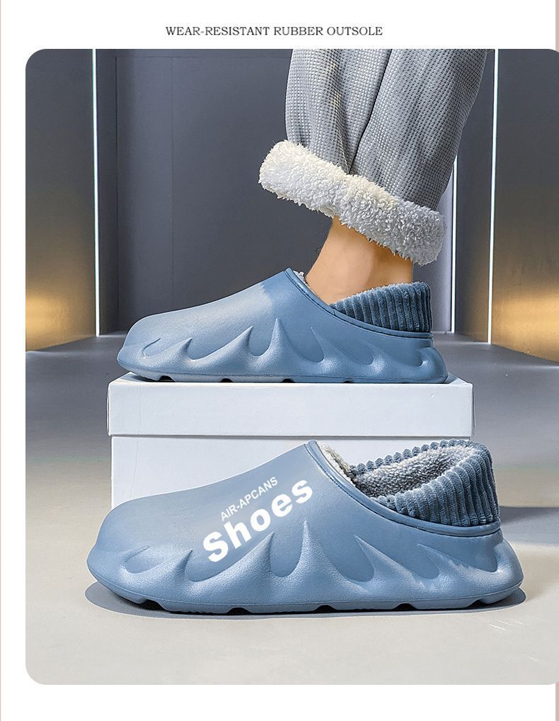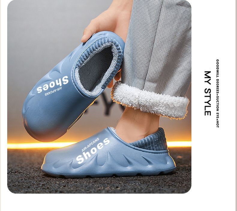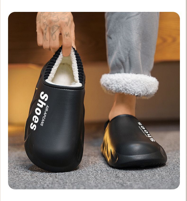 Mens Fleece-Lined Non-Slip Closed-Toe EVA Waterproof Cotton Slippers