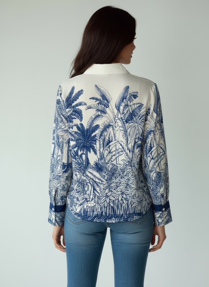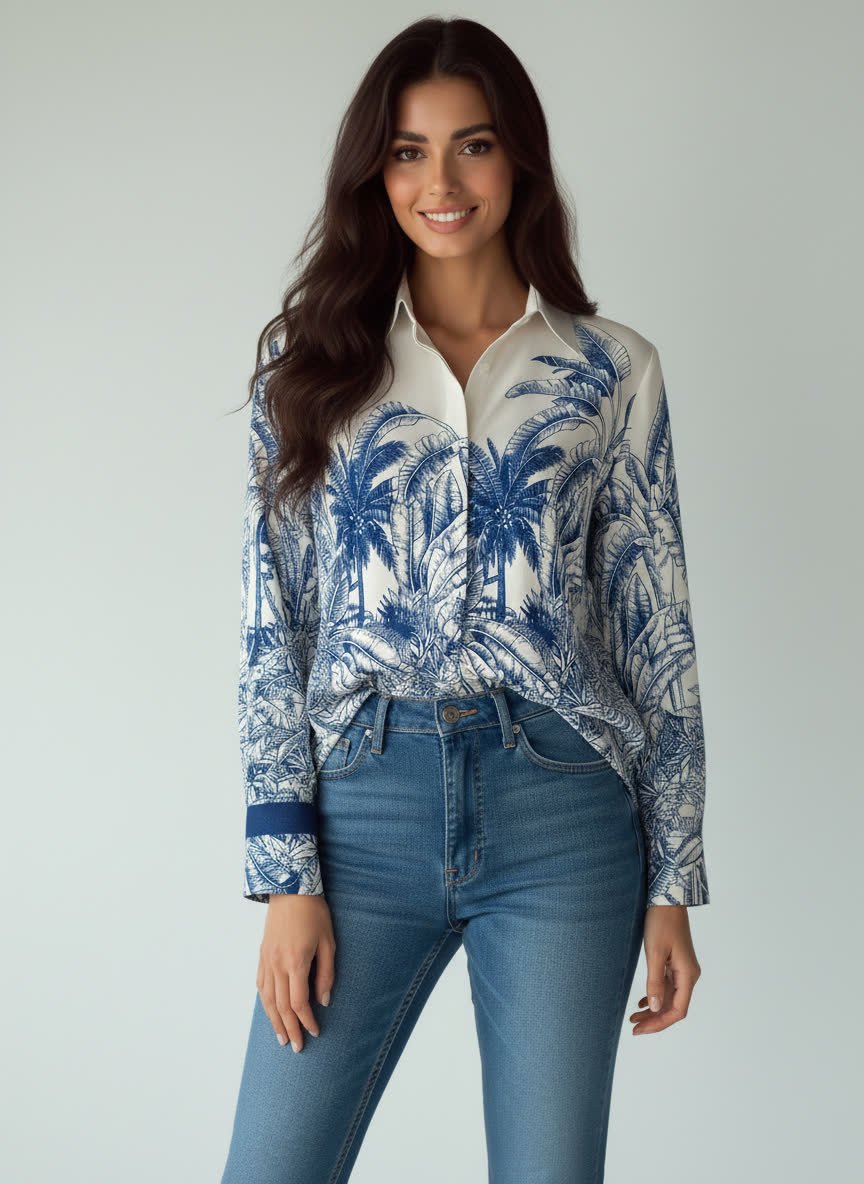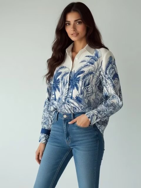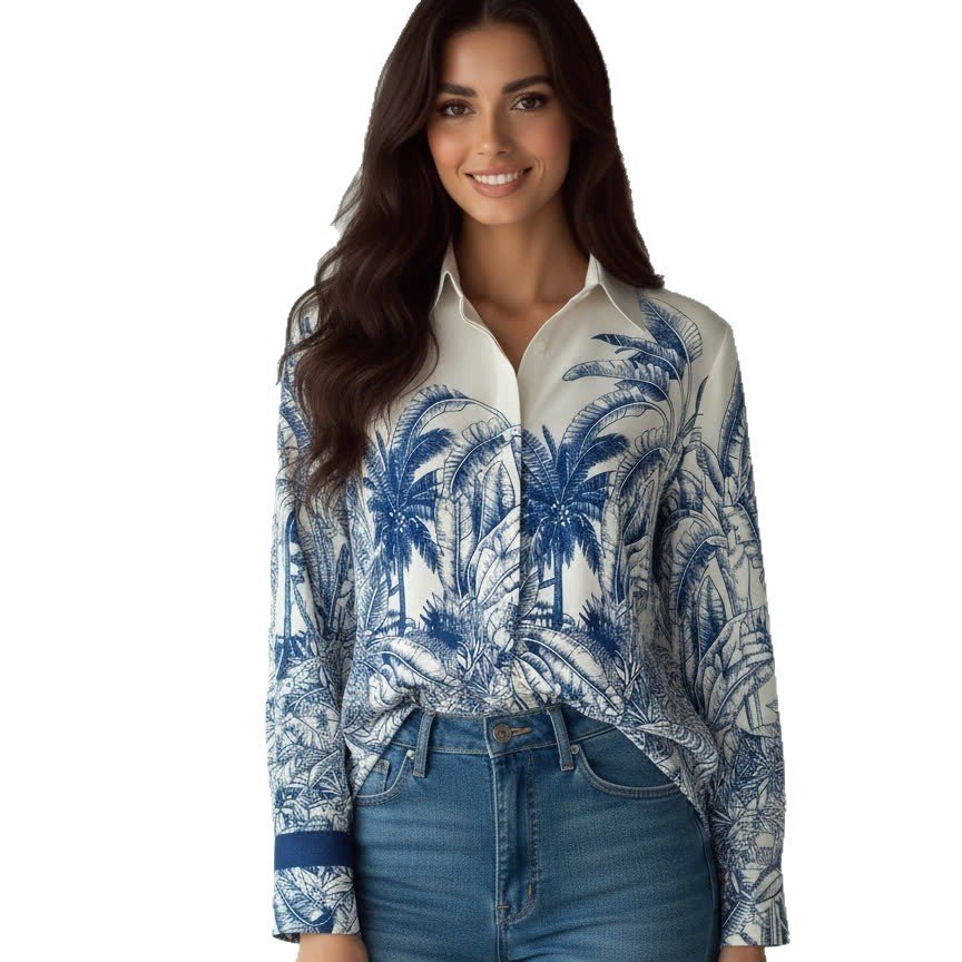 New Retro Casual Womens Loose Effortless Western-Style All-Match Long-Sleeve Shirt