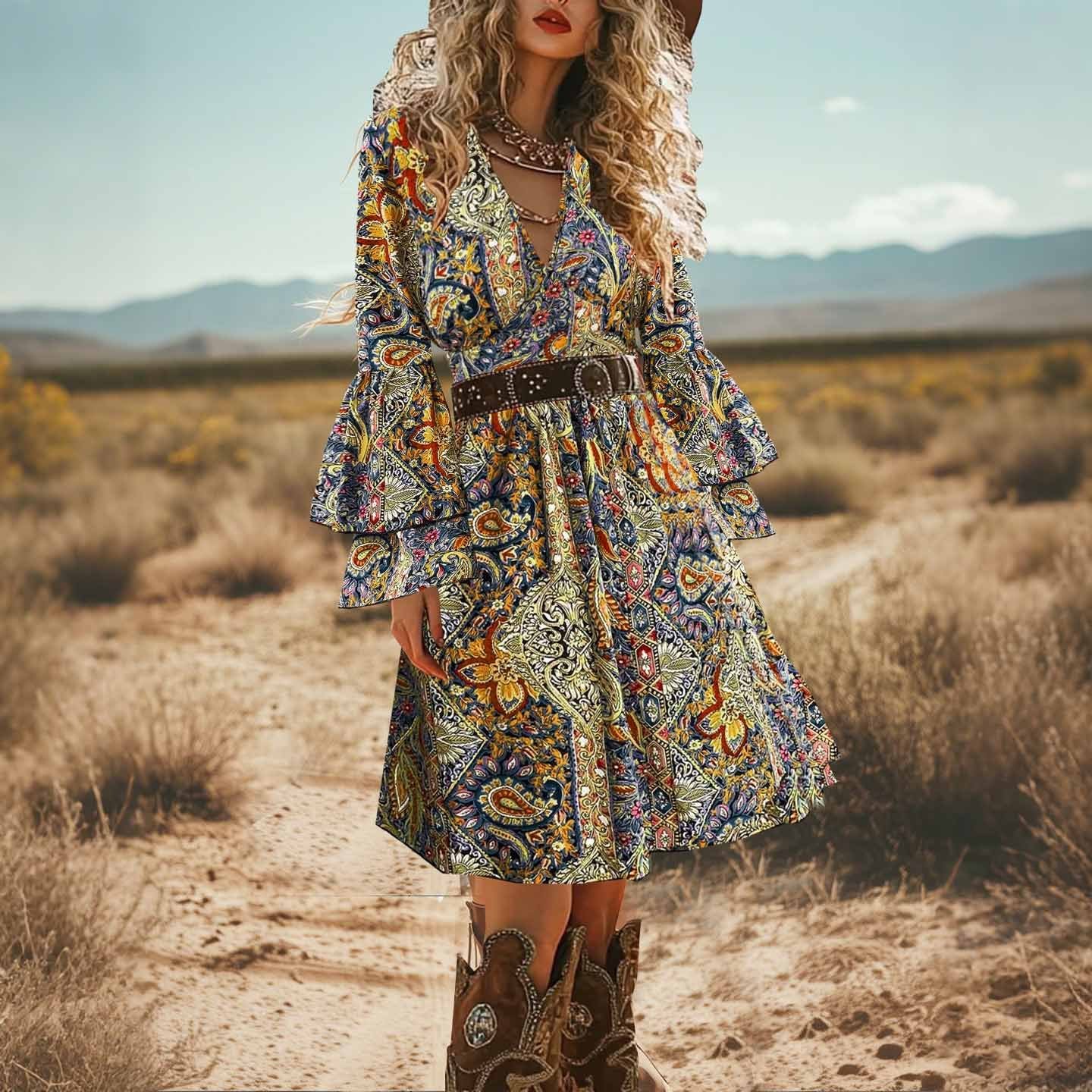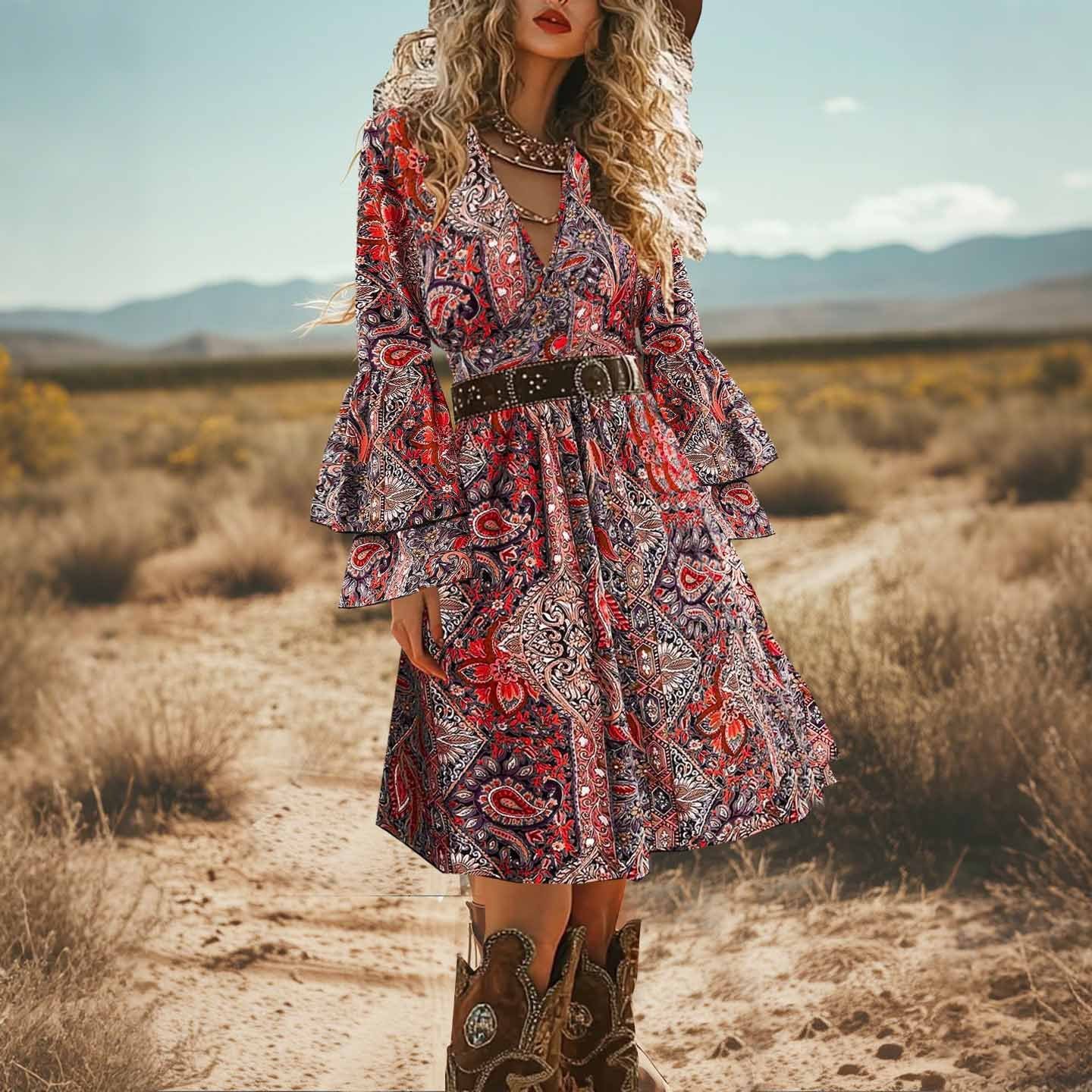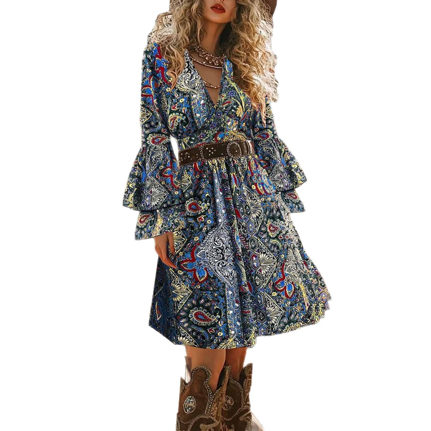 Western Bohemian Ethnic Long Sleeve Spring And Autumn Dress