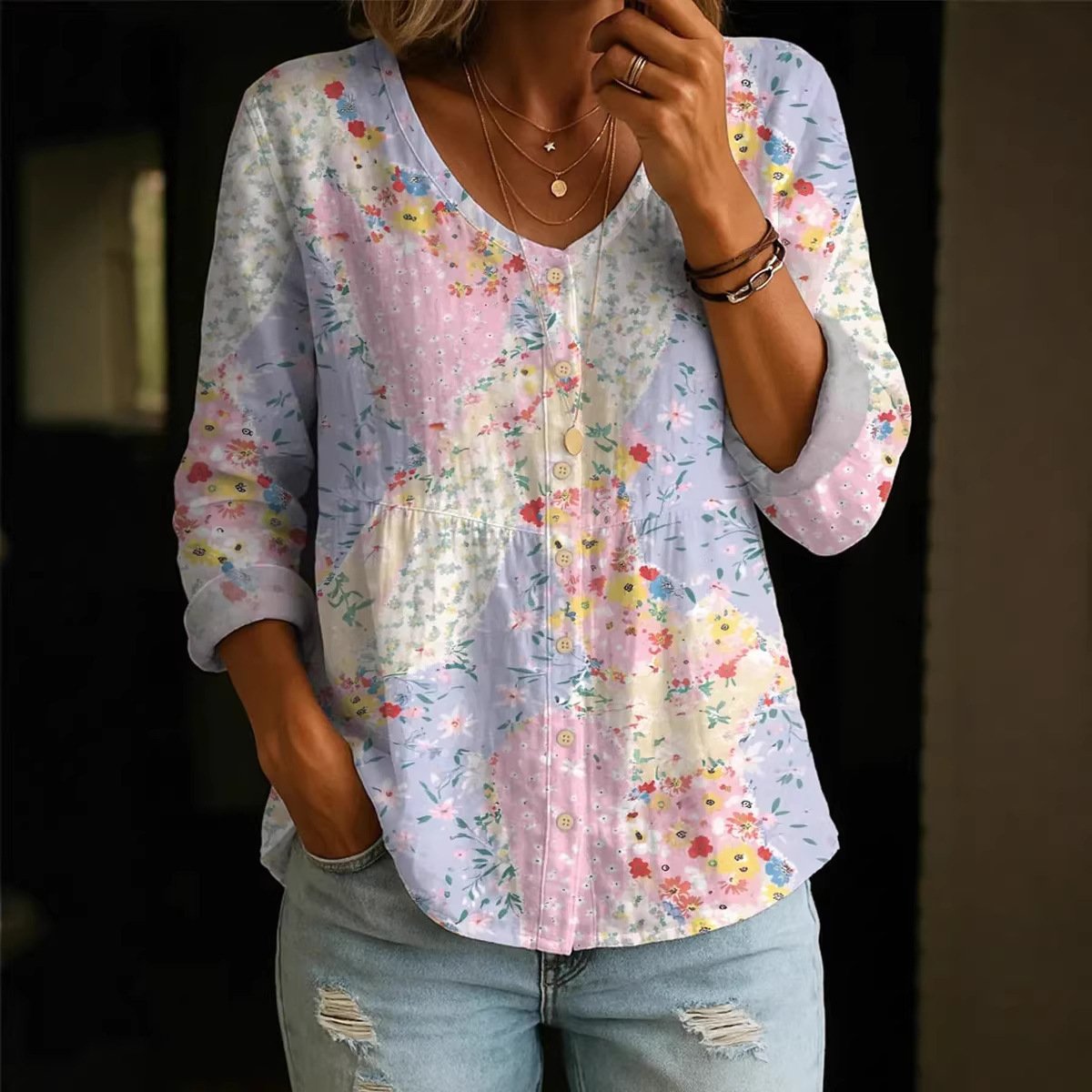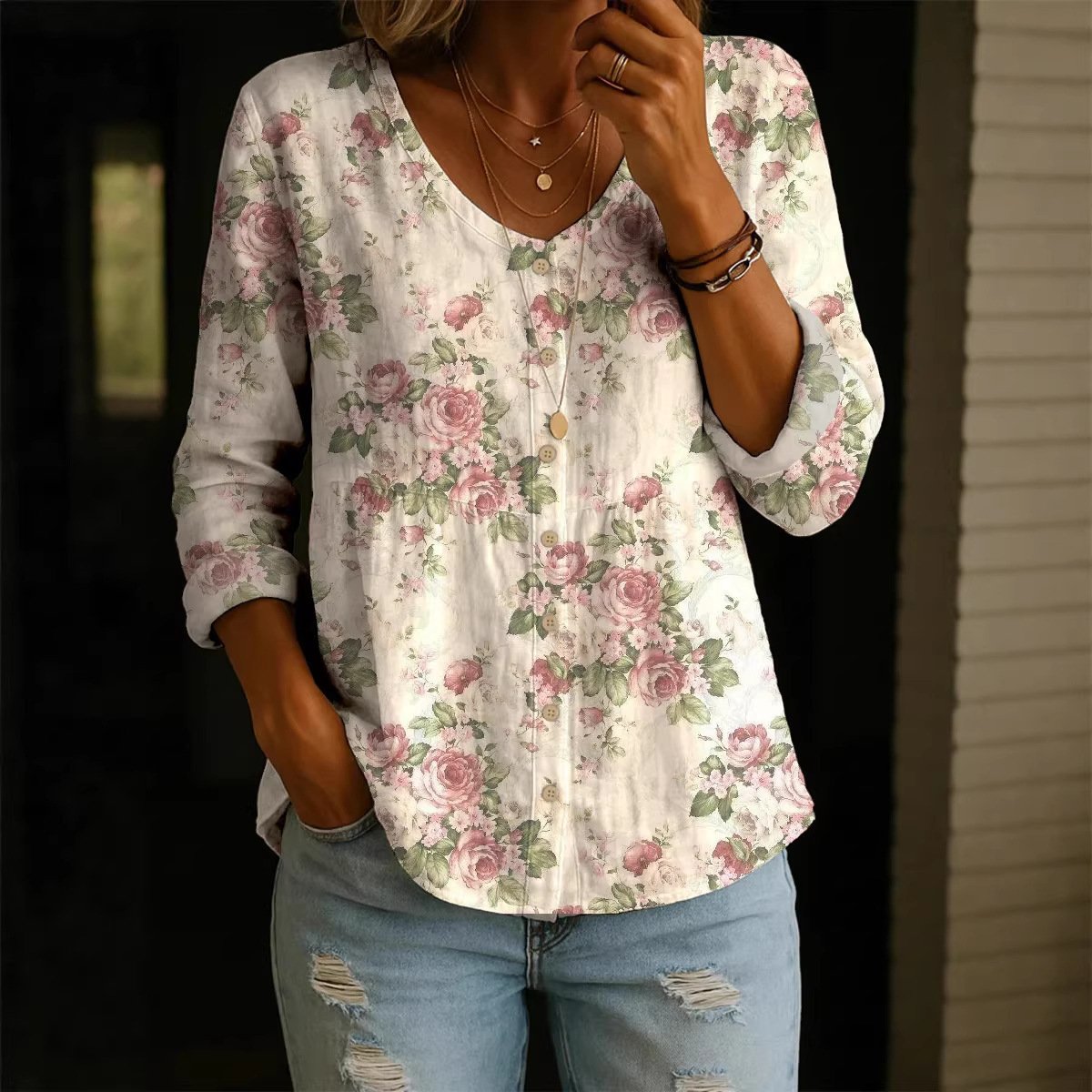 Sleeve Length: Three-quarter length sleeves.